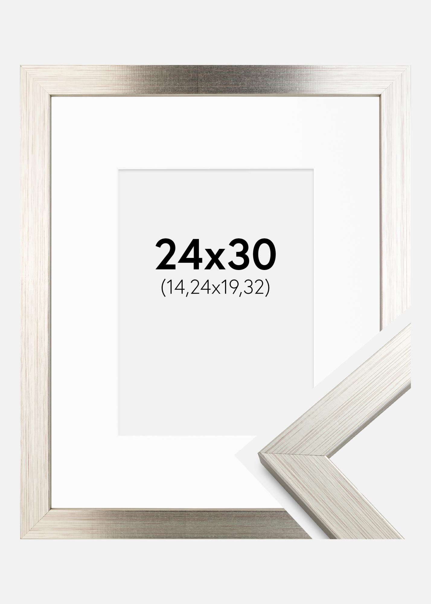 Rahmen Silver Wood 24x30 cm - Passepartout Weiß 6x8 inches