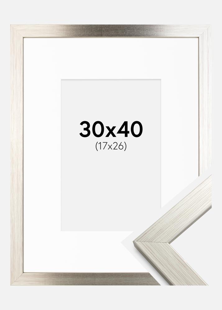 Rahmen Silver Wood 30x40 cm - Passepartout Weiß 18x27 cm