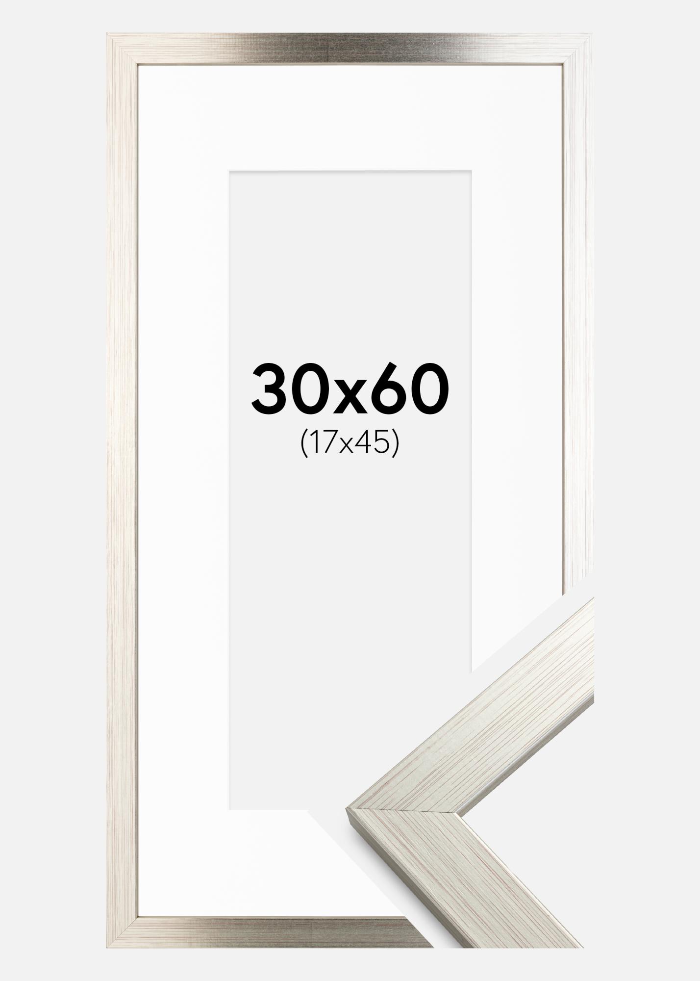 Rahmen Silver Wood 30x60 cm - Passepartout Weiß 18x46 cm