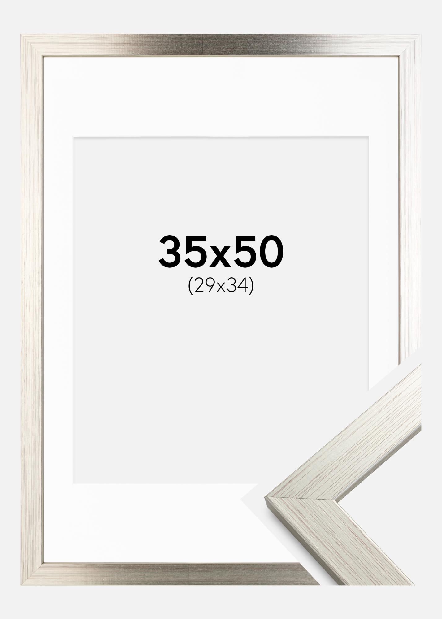 Rahmen Silver Wood 35x50 cm - Passepartout Weiß 30x35 cm