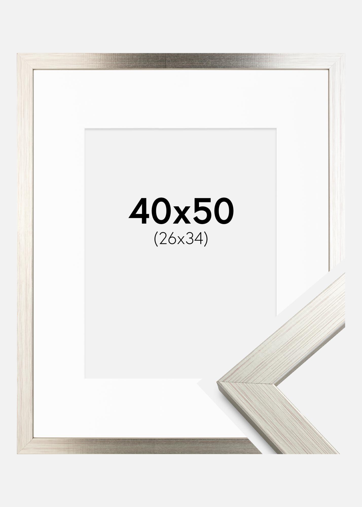 Rahmen Silver Wood 40x50 cm - Passepartout Weiß 27x35 cm