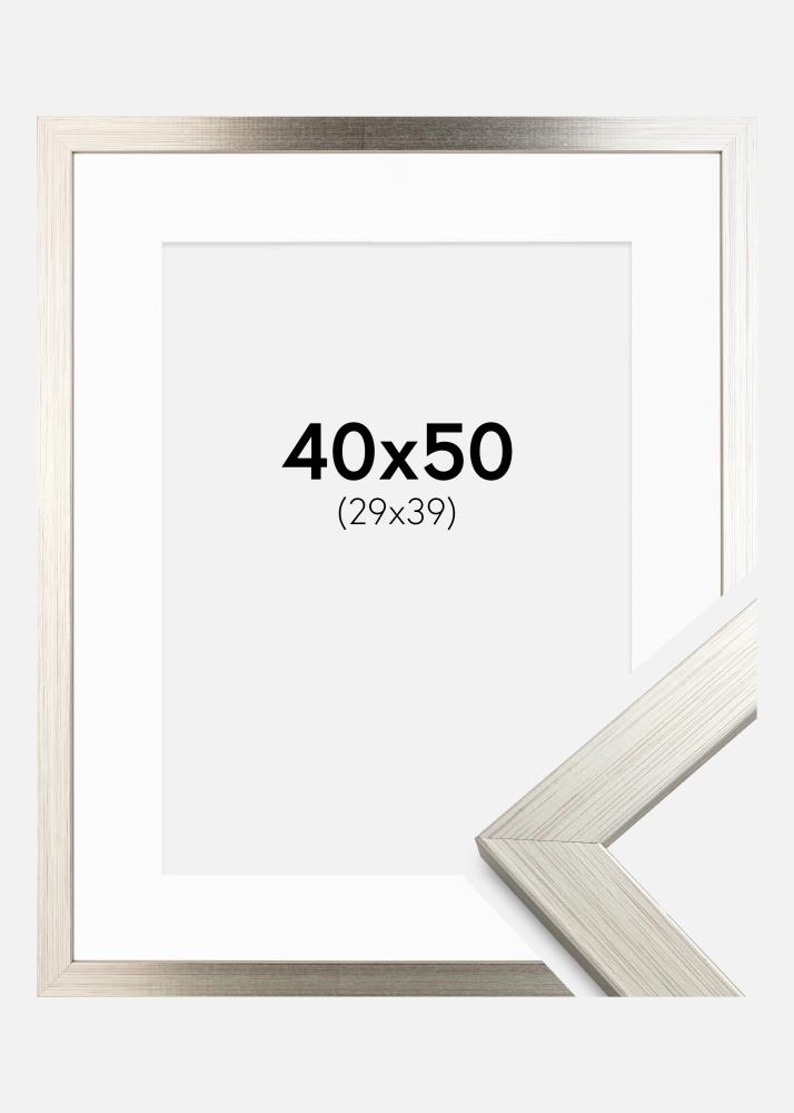 Rahmen Silver Wood 40x50 cm - Passepartout Weiß 30x40 cm