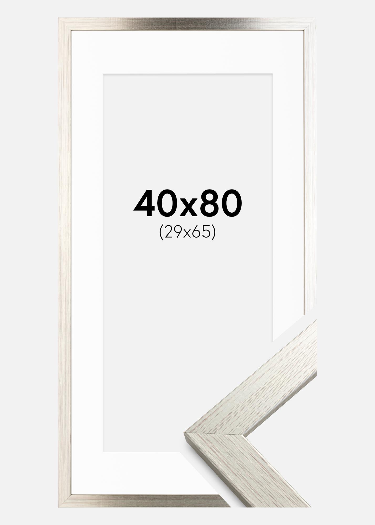 Rahmen Silver Wood 40x80 cm - Passepartout Weiß 30x66 cm