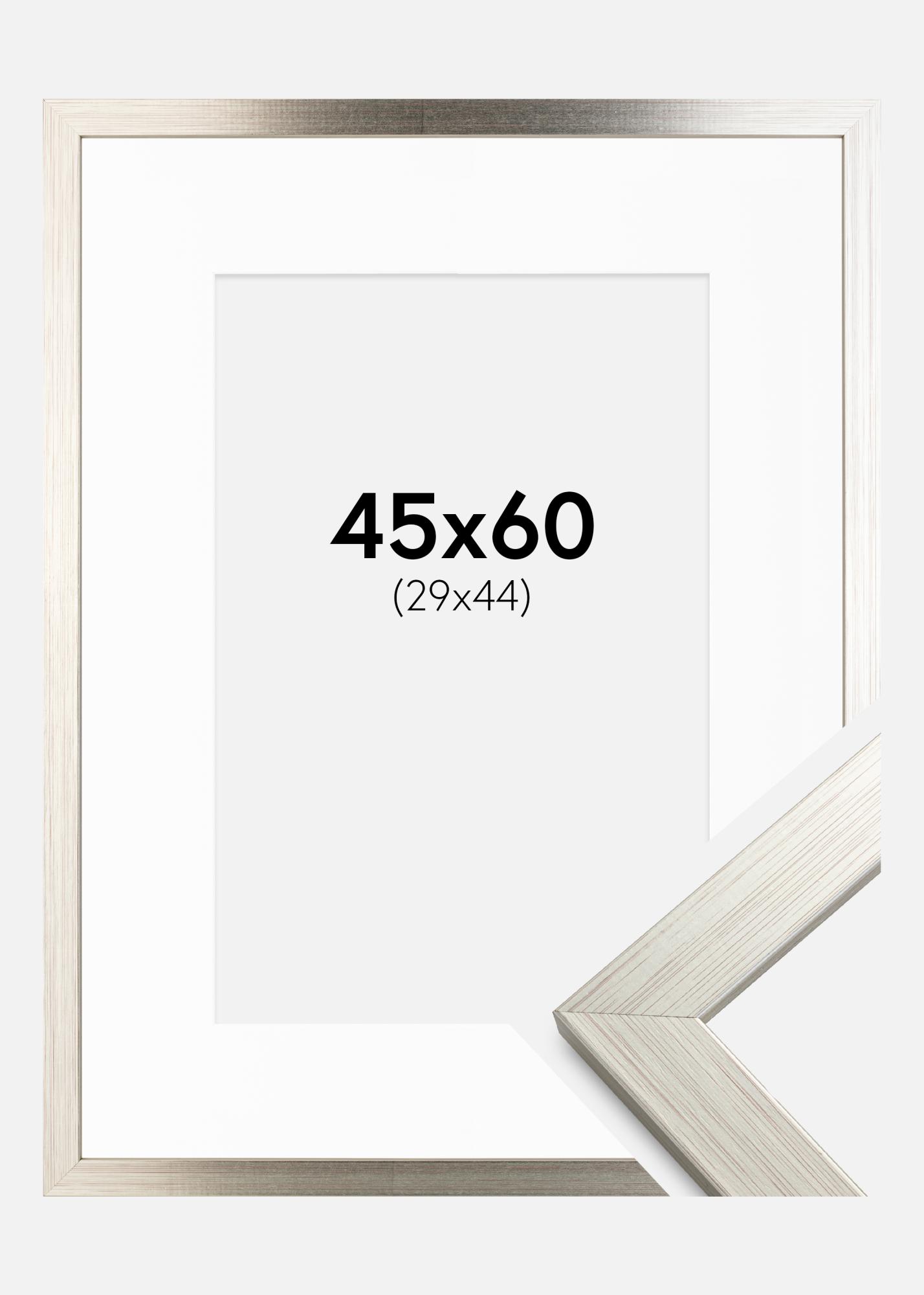 Rahmen Silver Wood 45x60 cm - Passepartout Weiß 30x45 cm