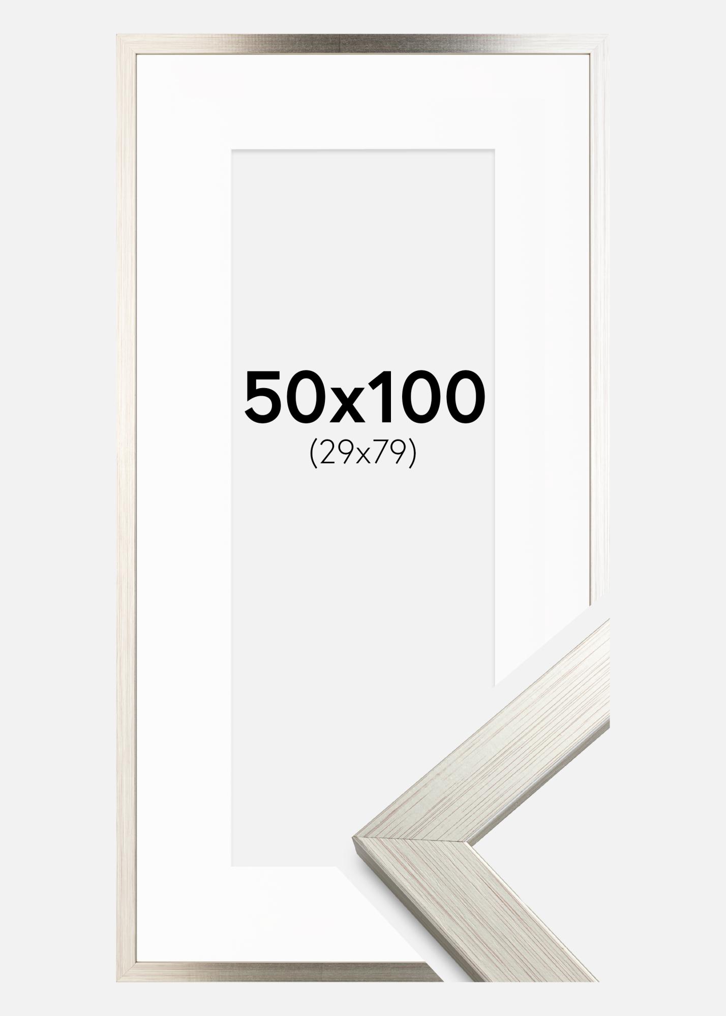 Rahmen Silver Wood 50x100 cm - Passepartout Weiß 30x80 cm