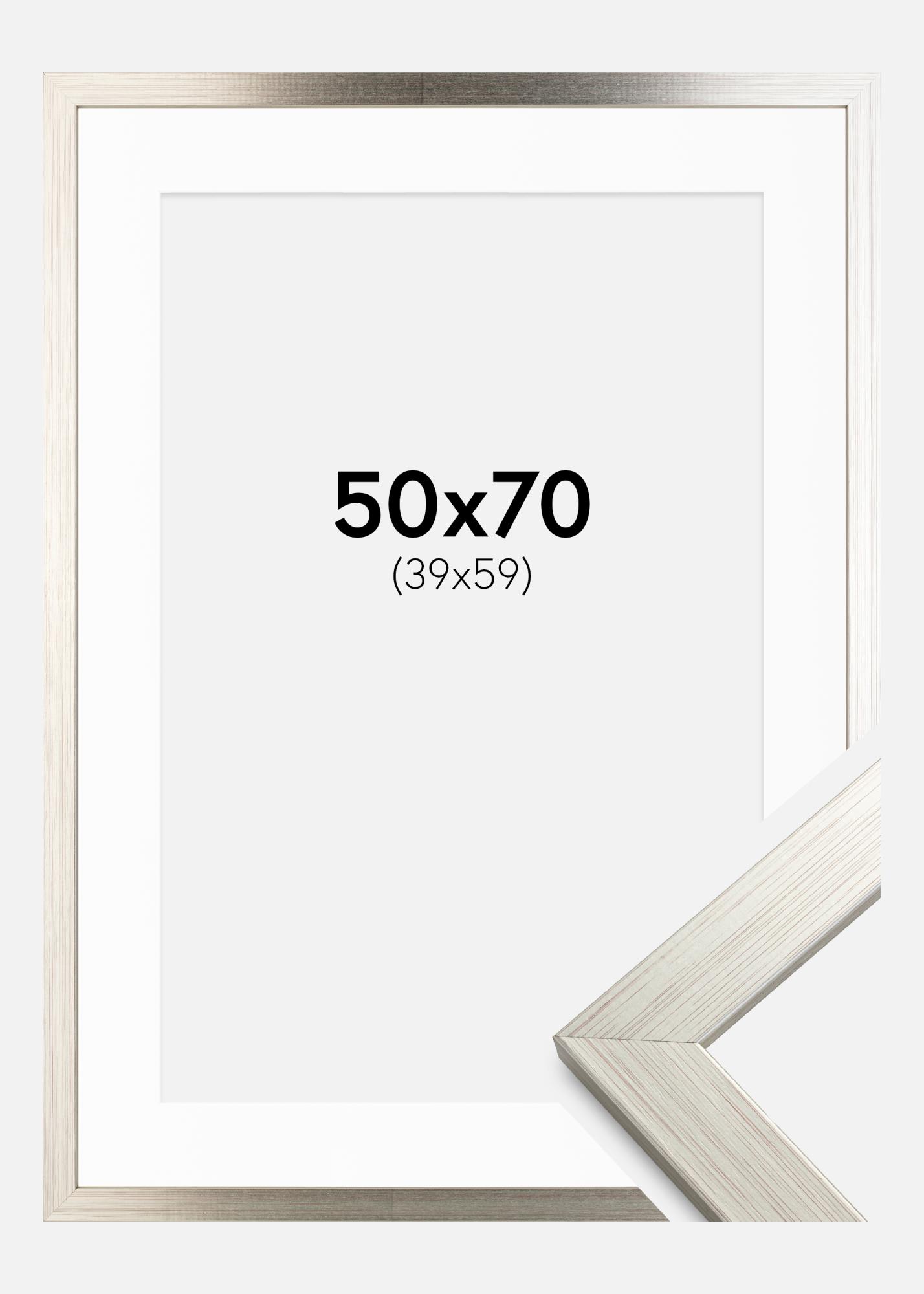 Rahmen Silver Wood 50x70 cm - Passepartout Weiß 40x60 cm