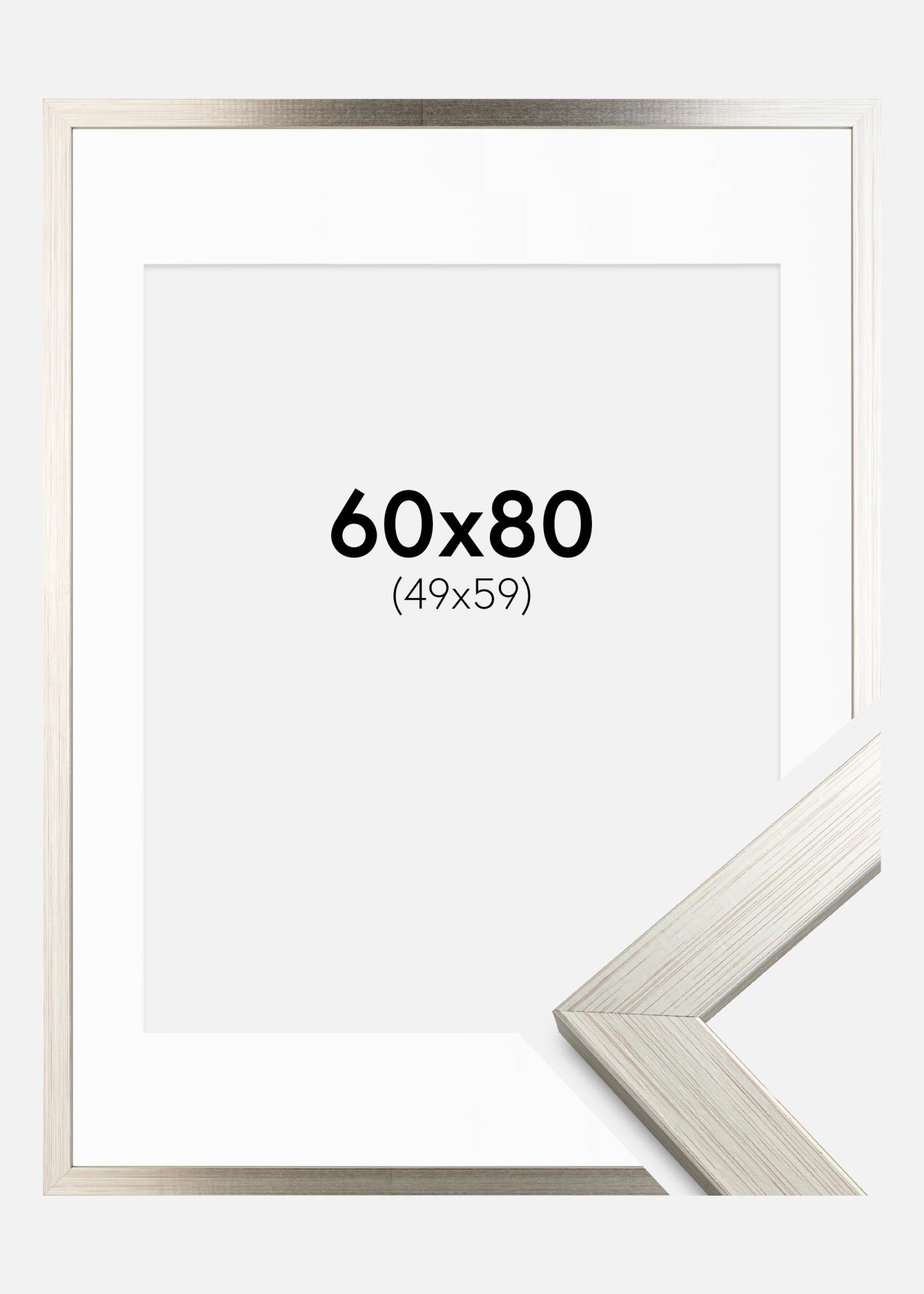 Rahmen Silver Wood 60x80 cm - Passepartout Weiß 50x60 cm