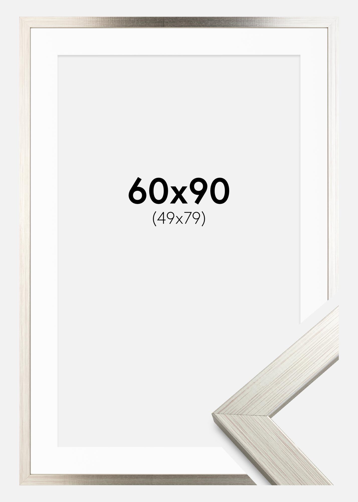 Rahmen Silver Wood 60x90 cm - Passepartout Weiß 50x80 cm