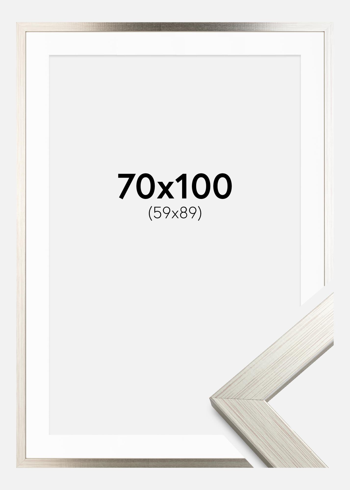 Rahmen Silver Wood 70x100 cm - Passepartout Weiß 60x90 cm