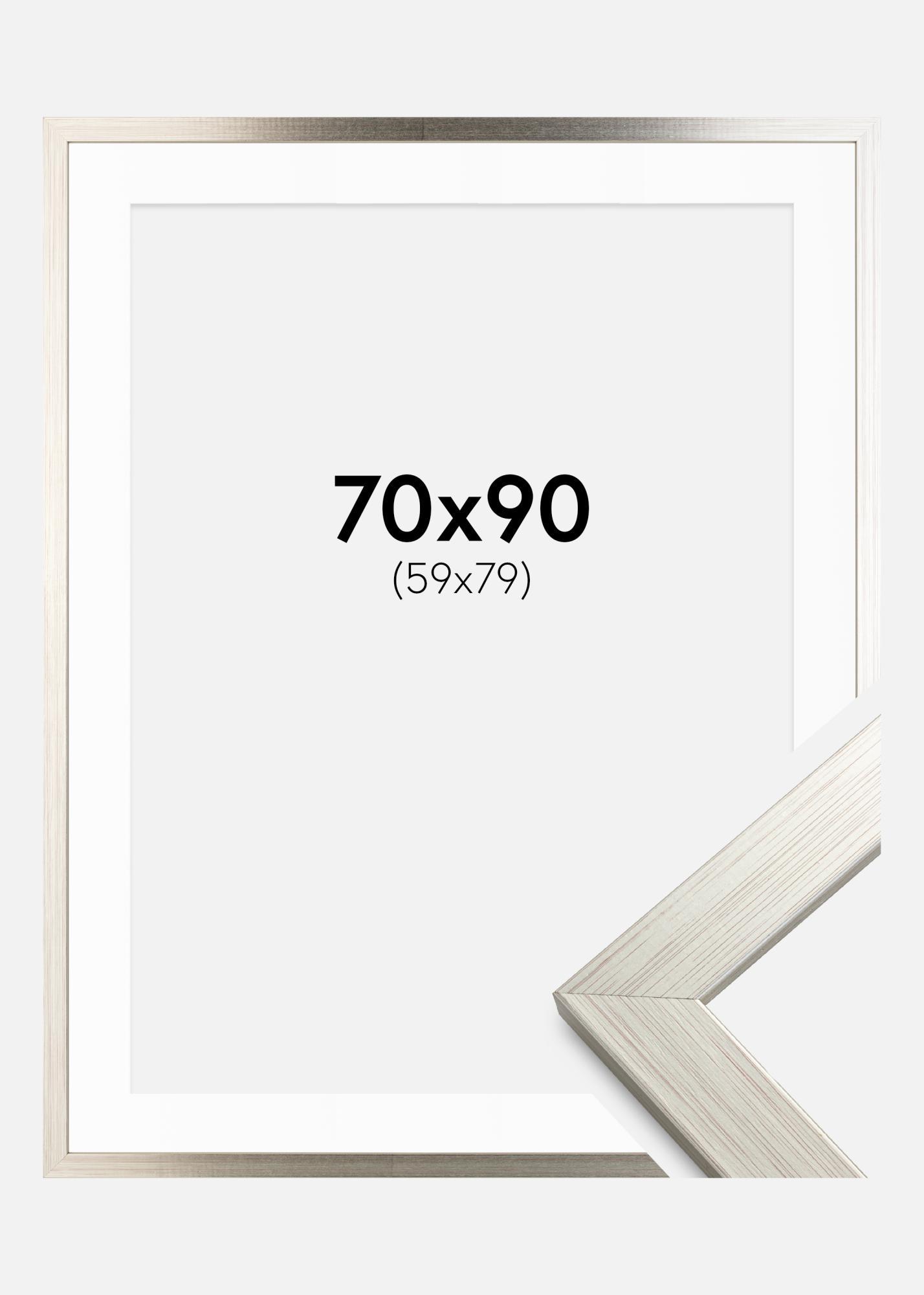 Rahmen Silver Wood 70x90 cm - Passepartout Weiß 60x80 cm