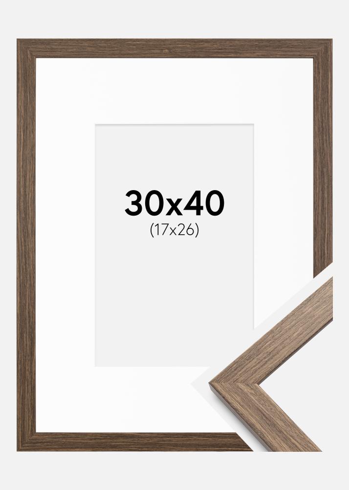 Rahmen Stilren kalt braun 30x40 cm - Passepartout Weiß 18x27 cm