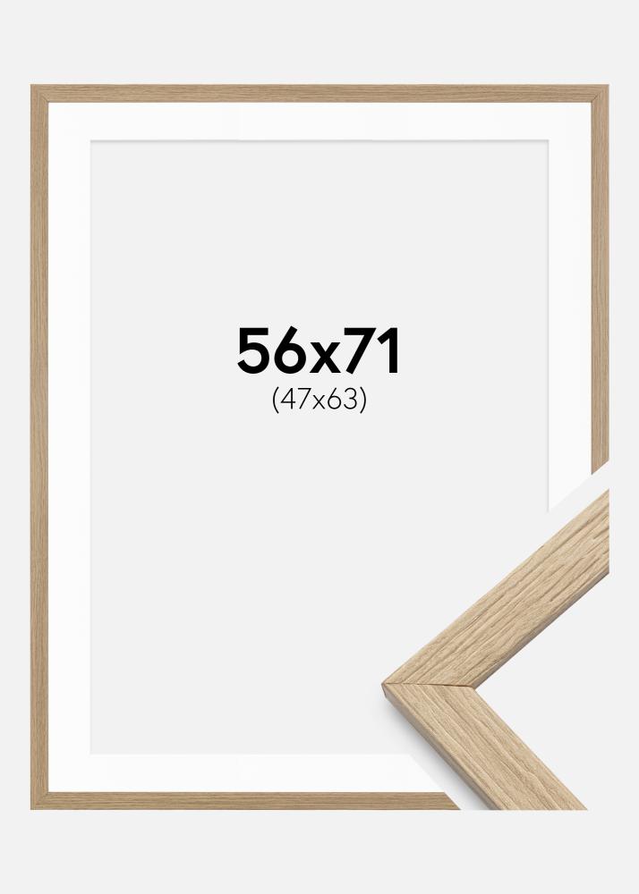 Der Rahmen hat eine Breite von 20 mm und eine Tiefe von 14 mm, was ein stabiles und robustes Gefühl vermittelt. Die matte Oberfläche im Eichenmuster verleiht ein natürliches und zeitloses Aussehen, das zu den meisten Einrichtungsstilen passt. Mit den Außenmaßen von 58x73 cm wird dieser Rahmen zu einem beeindruckenden Element an Ihrer Wand.
