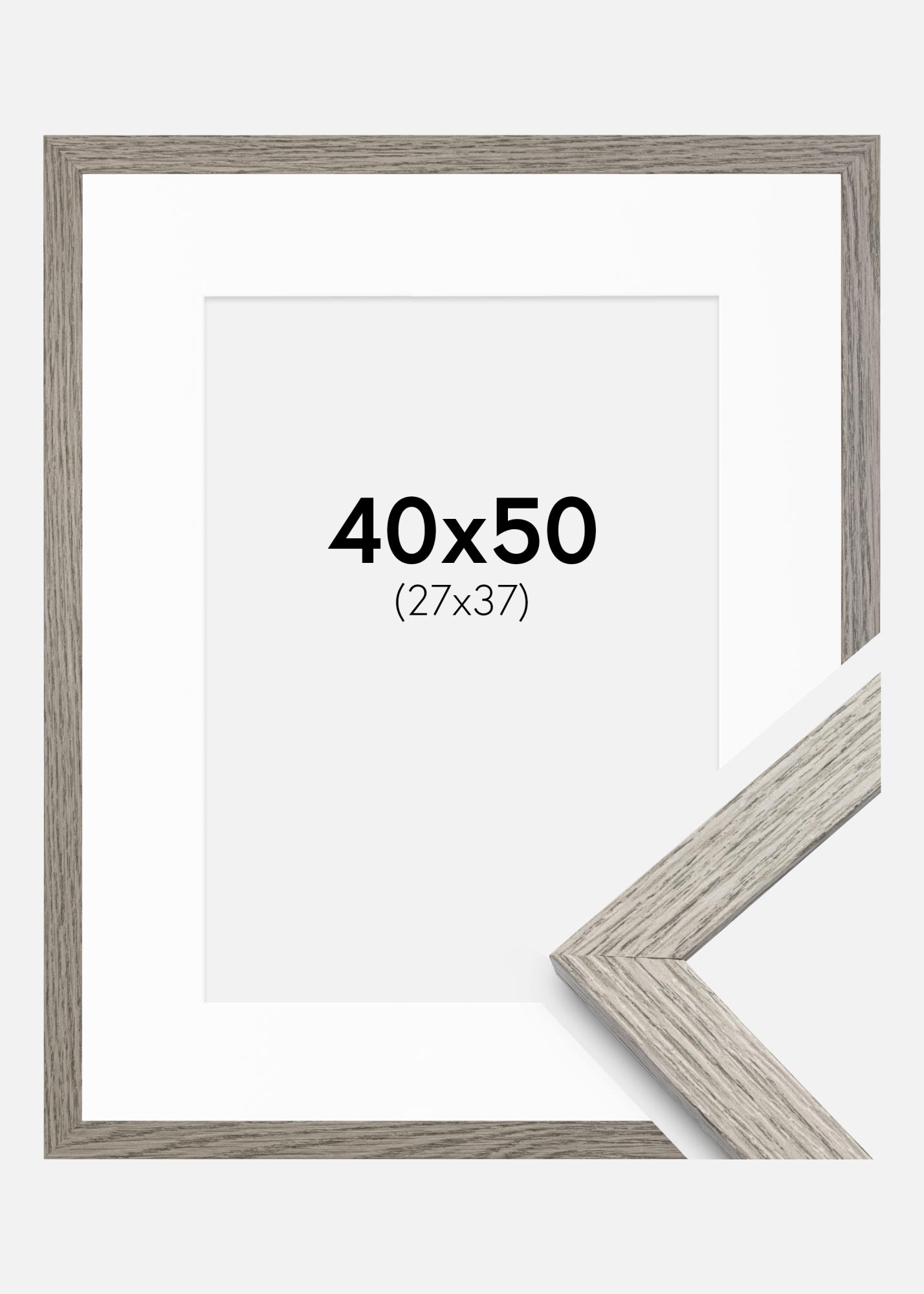 Rahmen Stilren grau Eiche 40x50 cm - Passepartout Weiß 28x38 cm