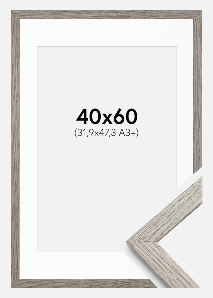 Rahmen Stilren grau Eiche 40x60 cm - Passepartout Weiß 32,9x48,3 cm