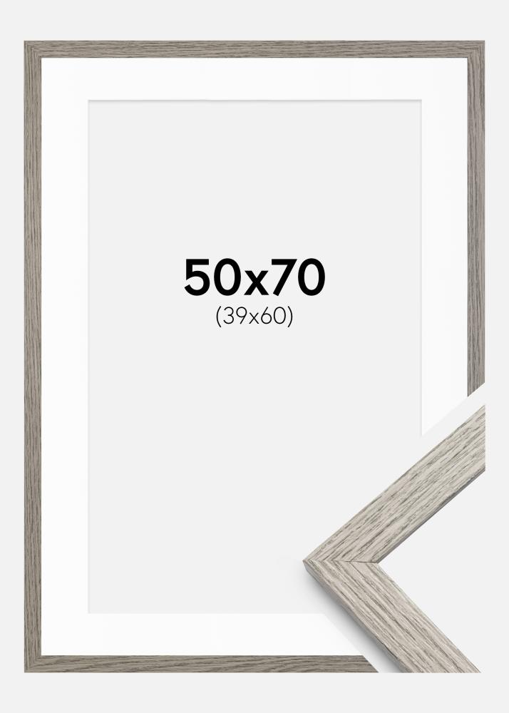 Rahmen Stilren grau Eiche 50x70 cm - Passepartout Weiß 40x61 cm