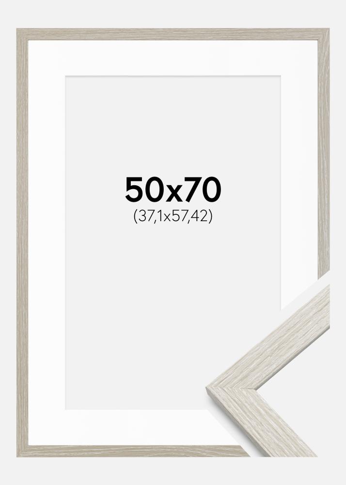 Rahmen Stilren Hellgrau Eiche 50x70 cm - Passepartout Weiß 15x23 inches