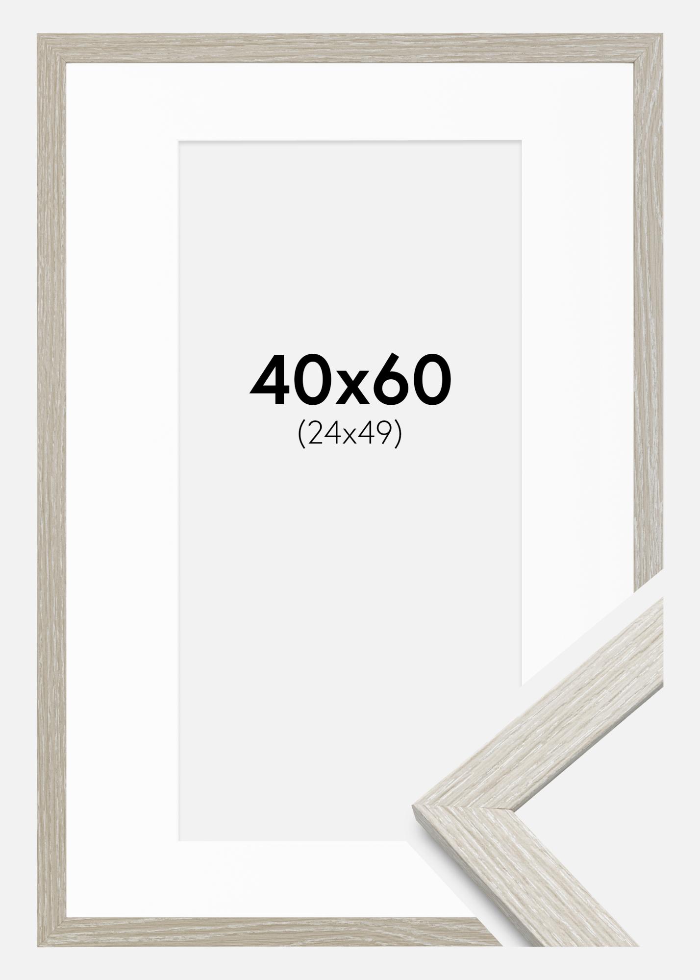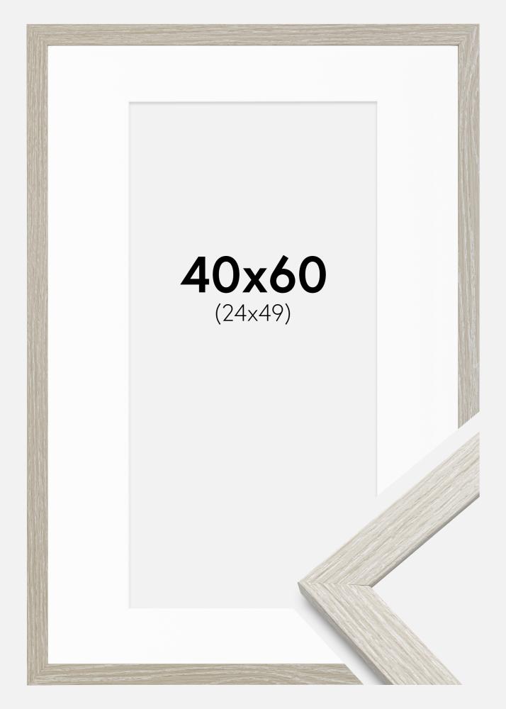 Rahmen Stilren hellgrau Eiche 40x60 cm - Passepartout Weiß 25x50 cm