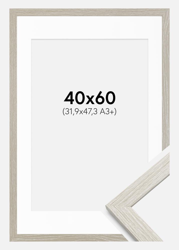 Rahmen Stilren hellgrau Eiche 40x60 cm - Passepartout Weiß 32,9x48,3 cm