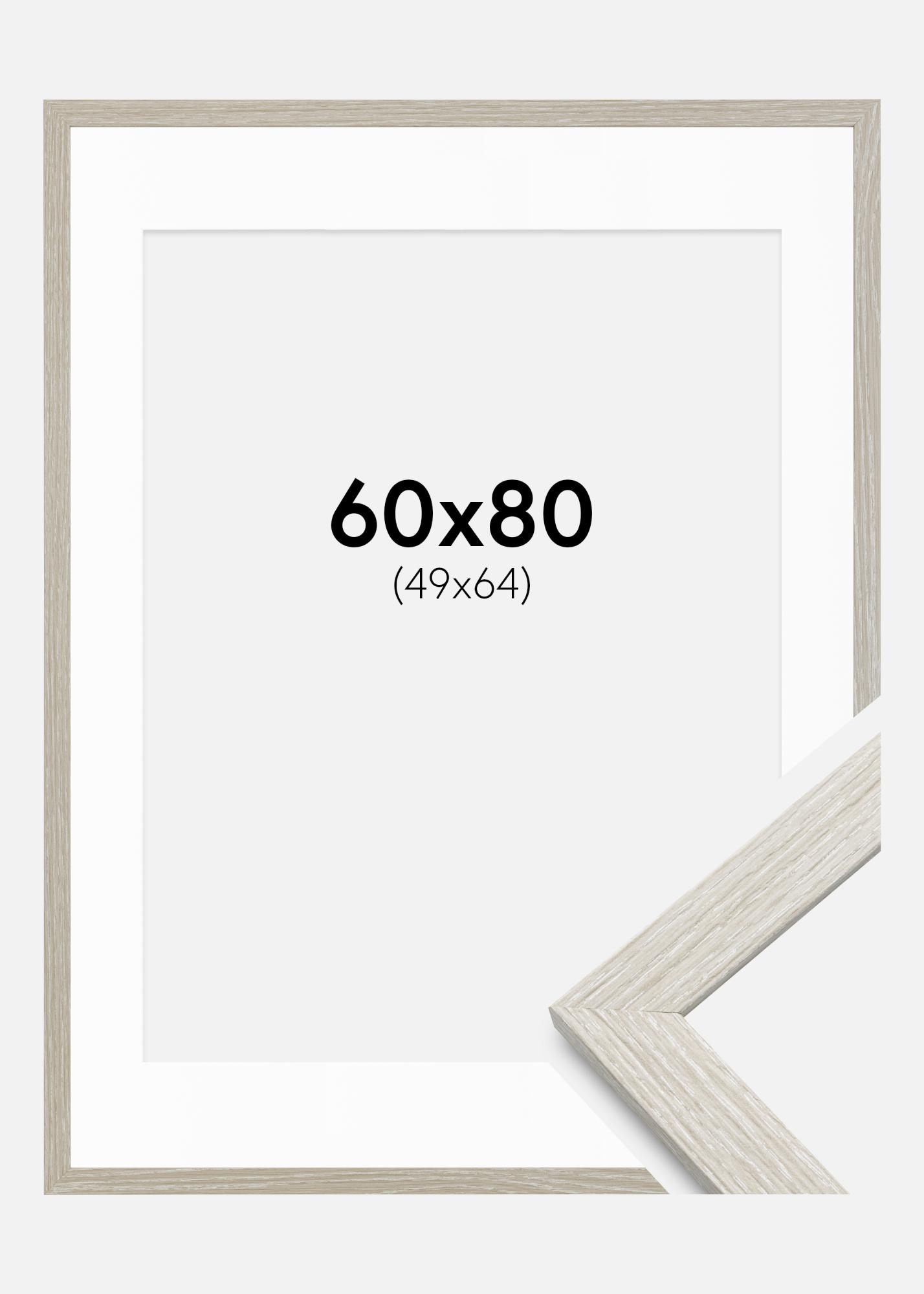 Rahmen Stilren hellgrau Eiche 60x80 cm - Passepartout Weiß 50x65 cm