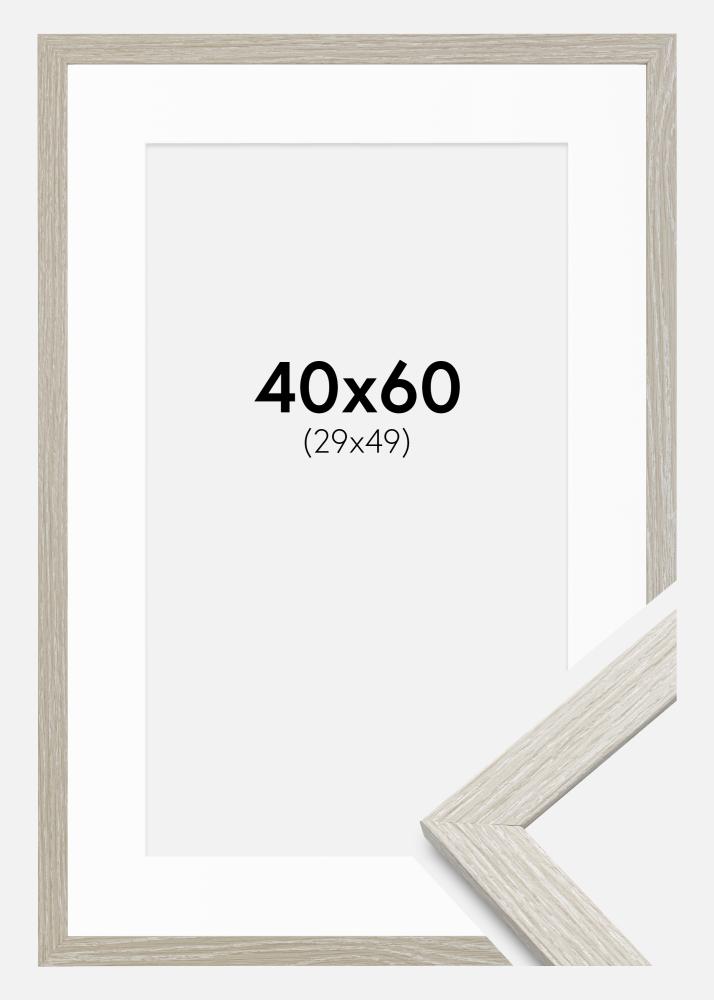 Rahmen Stilren hellgrau Eiche 40x60 cm - Passepartout Weiß 30x50 cm