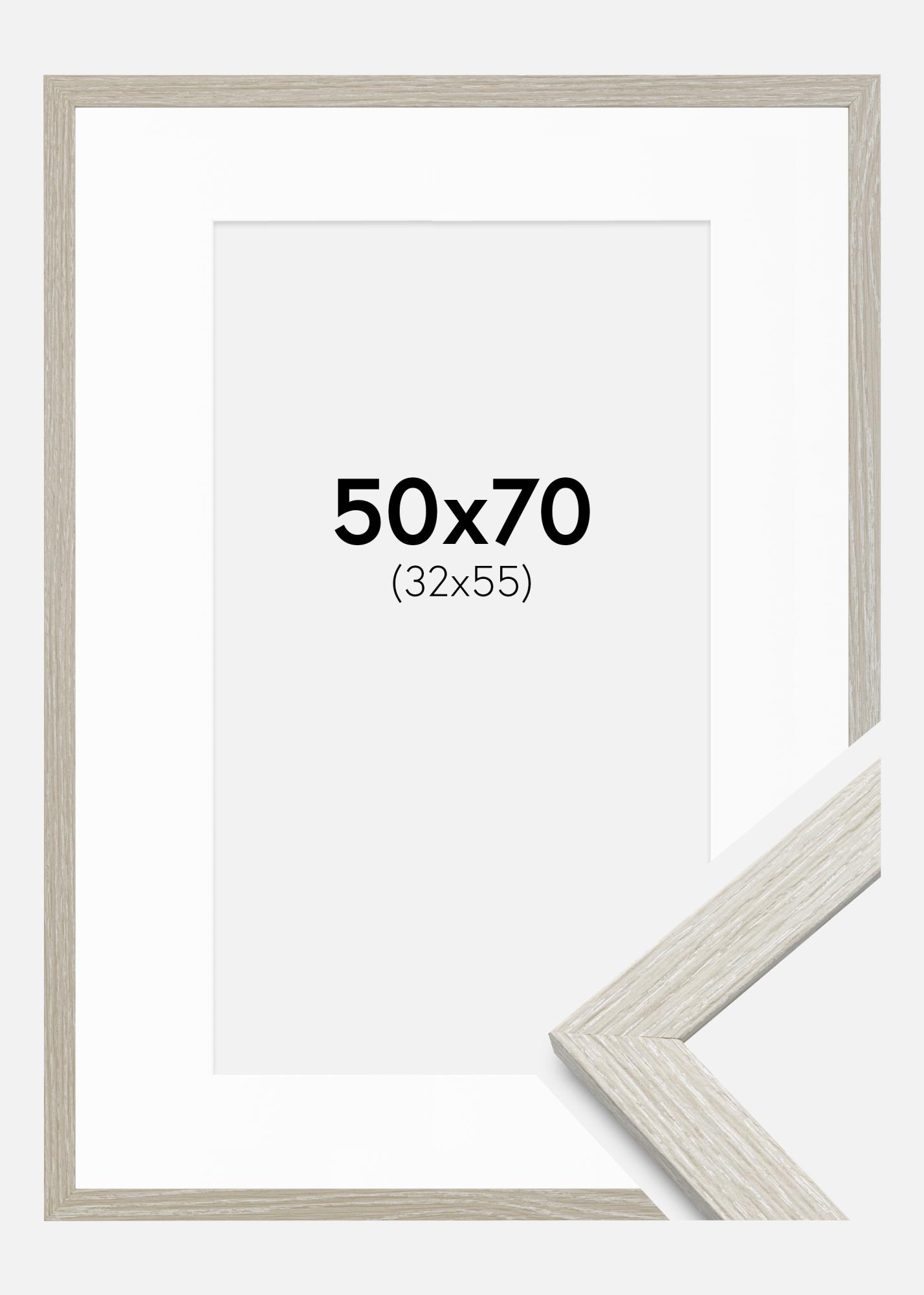 Rahmen Stilren hellgrau Eiche 50x70 cm - Passepartout Weiß 33x56 cm