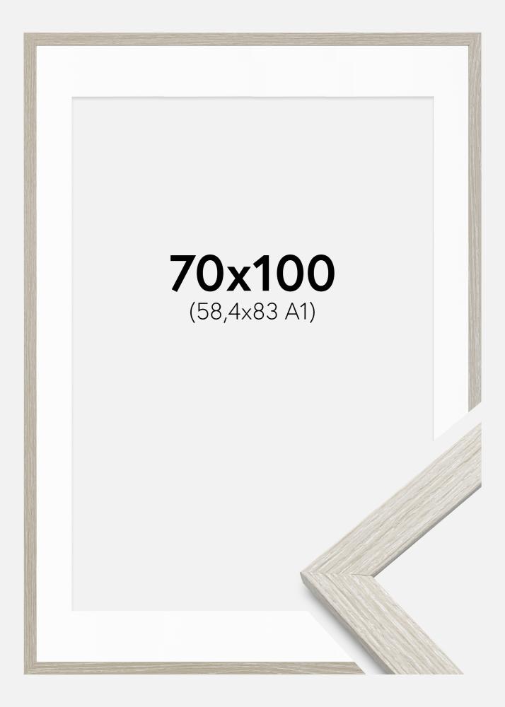 Rahmen Stilren hellgrau Eiche 70x100 cm - Passepartout Weiß 59,4x84 cm