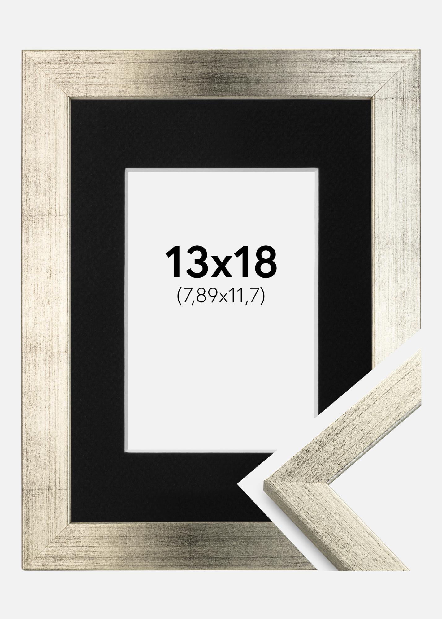 Rahmen Stilren Silber 13x18 cm - Passepartout Schwarz 3,5x5 inches
