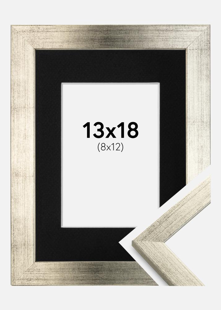 Rahmen Stilren Silber 13x18 cm - Passepartout Schwarz 9x13 cm