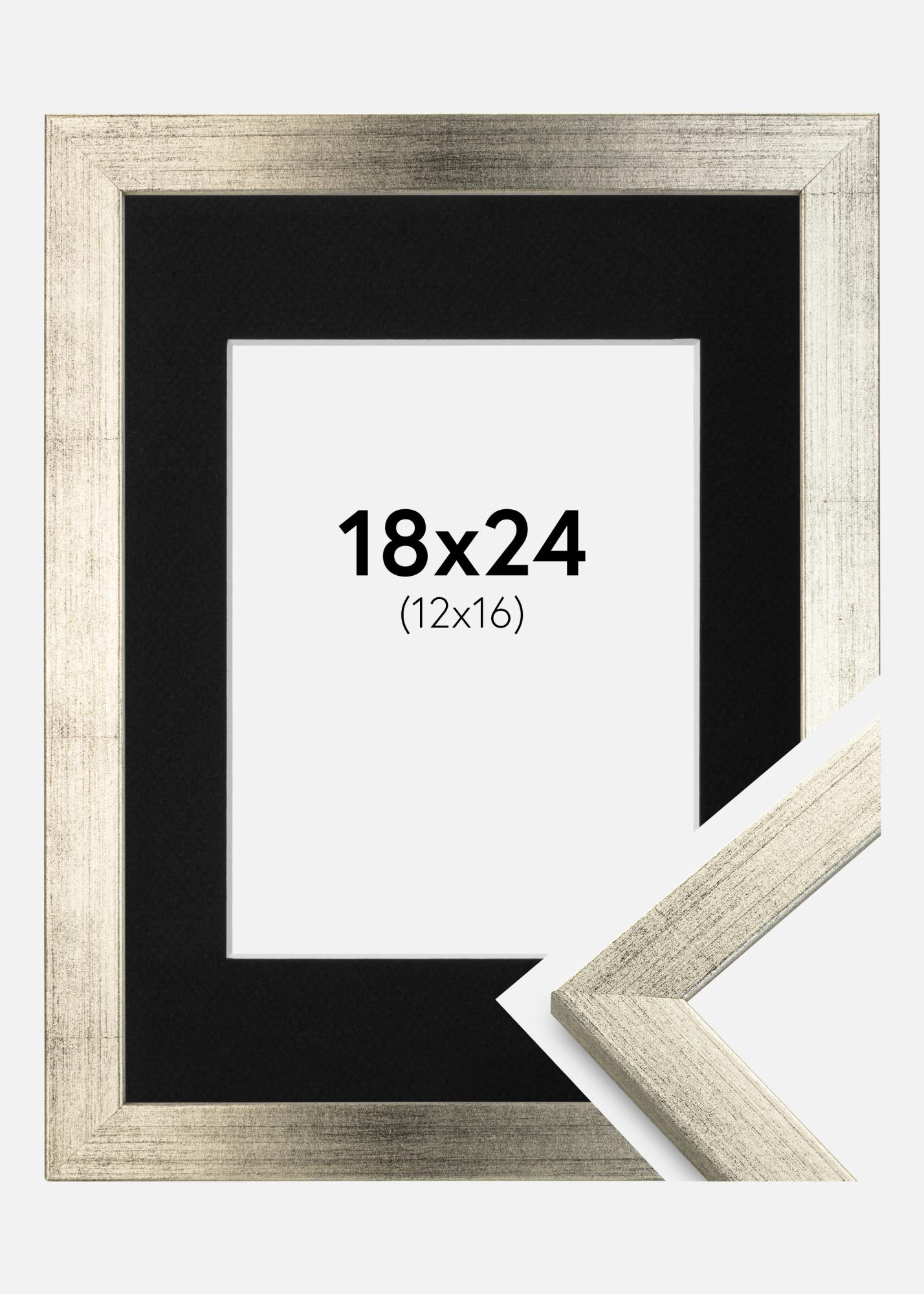 Rahmen Stilren Silber 18x24 cm - Passepartout Schwarz 13x17 cm