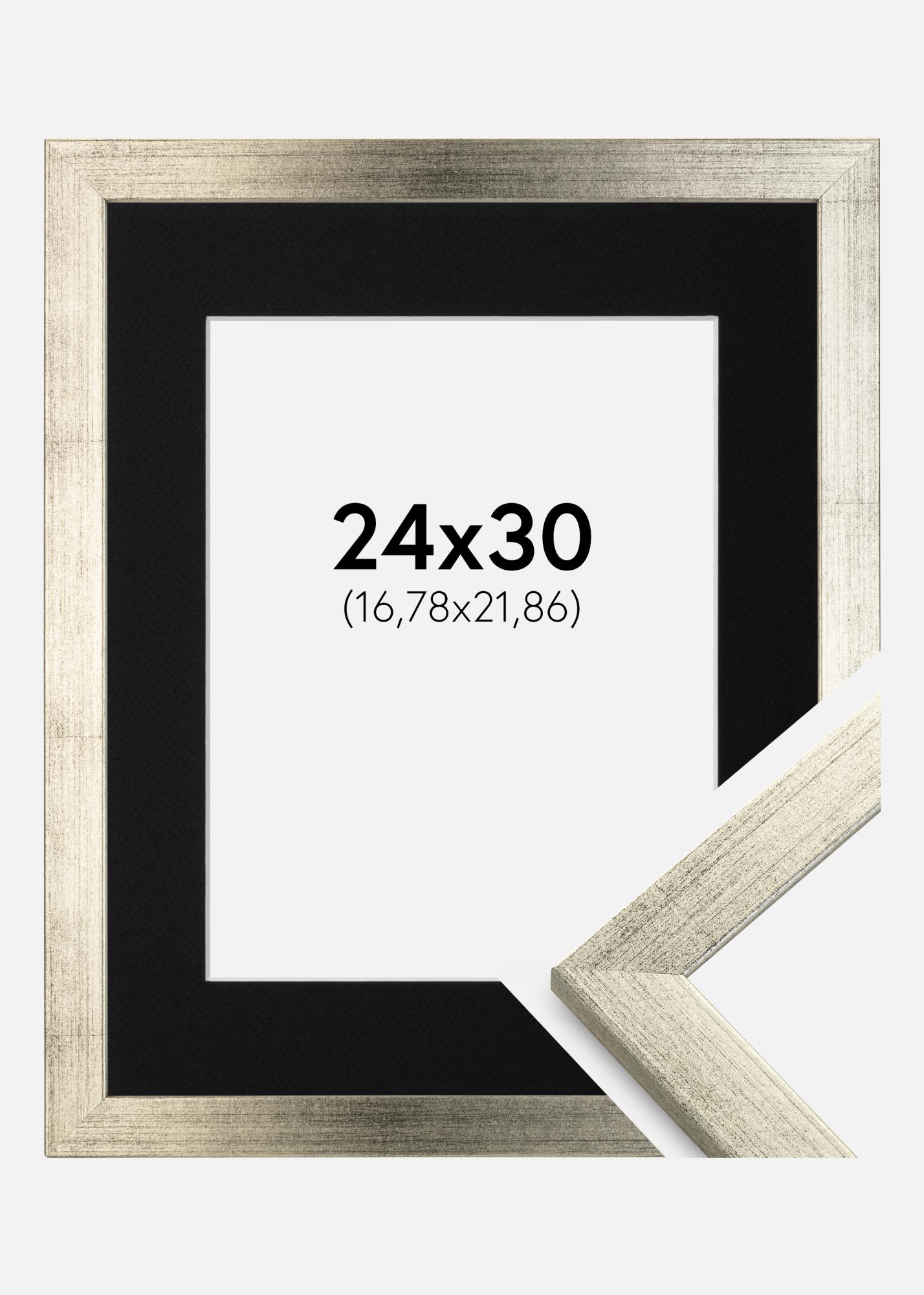 Rahmen Stilren Silber 24x30 cm - Passepartout Schwarz 7x9 inches