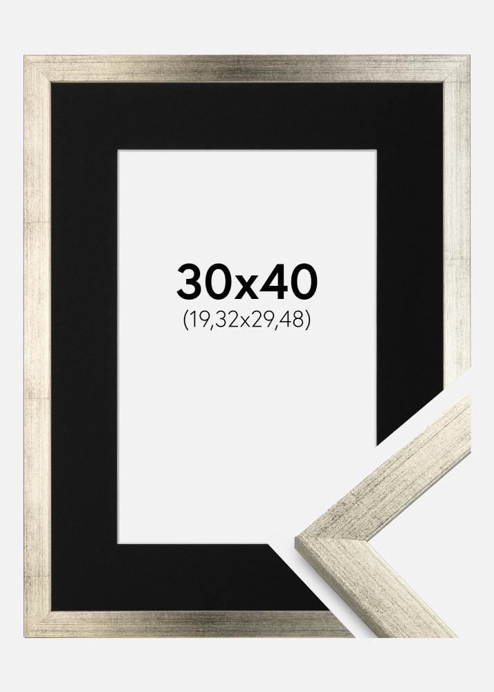 Rahmen Stilren Silber 30x40 cm - Passepartout Schwarz 8x12 inches