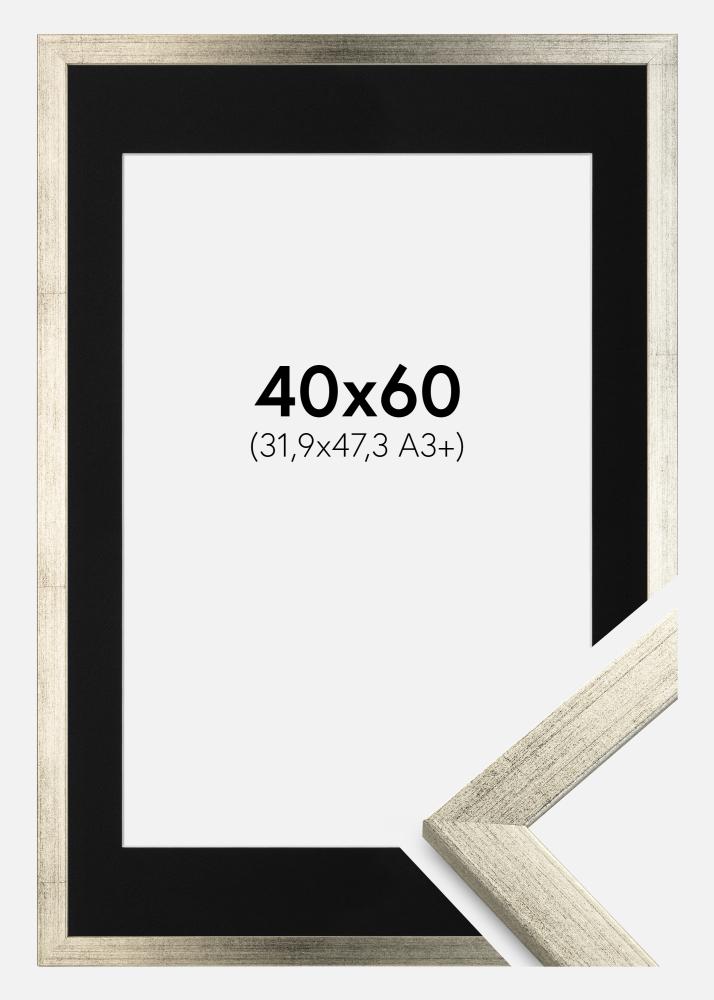 Rahmen Stilren Silber 40x60 cm - Passepartout Schwarz 32,9x48,3 cm (A3+)