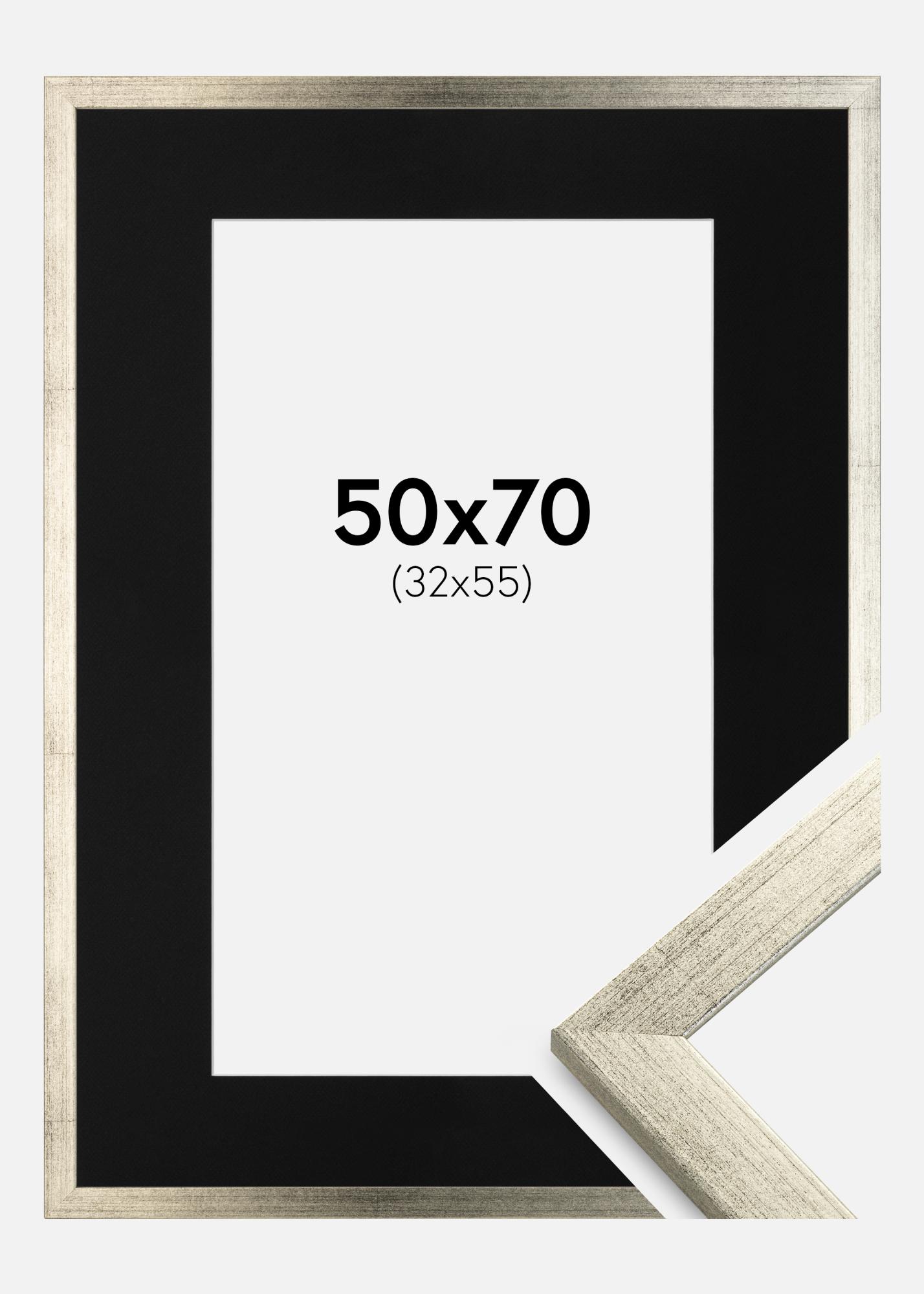 Rahmen Stilren Silber 50x70 cm - Passepartout Schwarz 33x56 cm