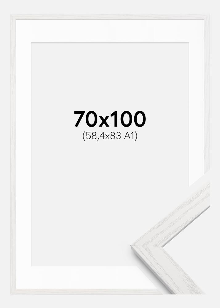 Rahmen Stilren Weiß Eiche 70x100 cm - Passepartout Weiß 59,4x84 cm