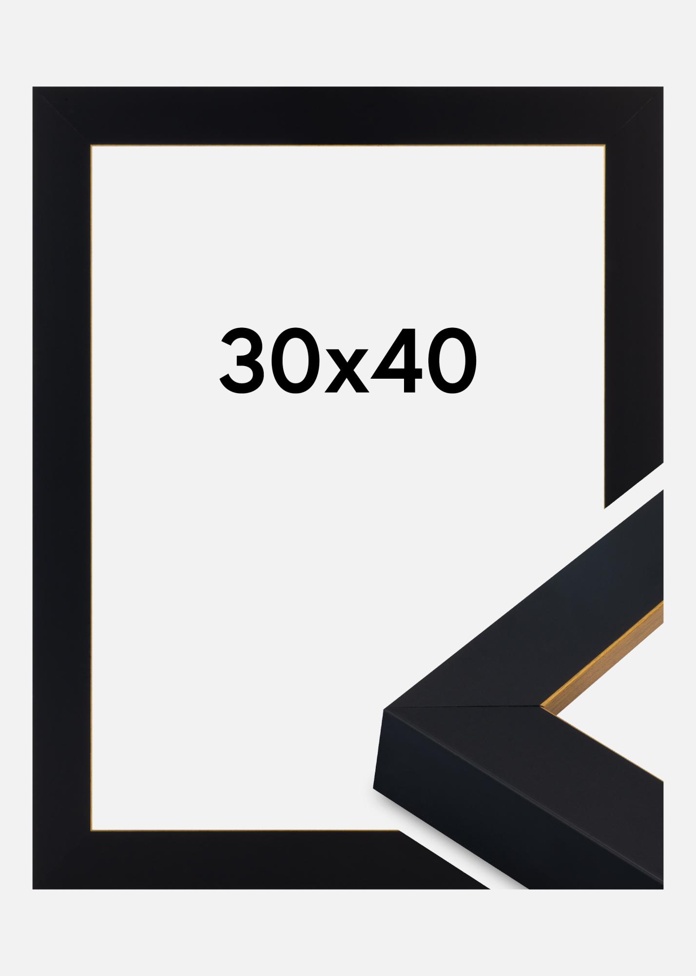 Dieser elegante Fotorahmen ist perfekt, um deine Lieblingsmotive im Format 30x40 cm hervorzuheben. Mit einem modernen und klaren Design kombiniert er eine glatte, glänzende Oberfläche in Schwarz mit einem eleganten Rand in Gold. Das schmale Profil sorgt für einen reduzierten und grafischen Ausdruck, der das Motiv in den Mittelpunkt stellt – ideal für Fotos und Poster.