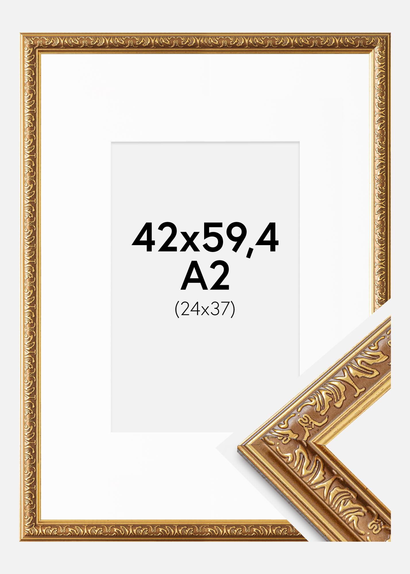 Rahmen Swirl Gold 42x59,4 cm - Passepartout Weiß 25x38 cm