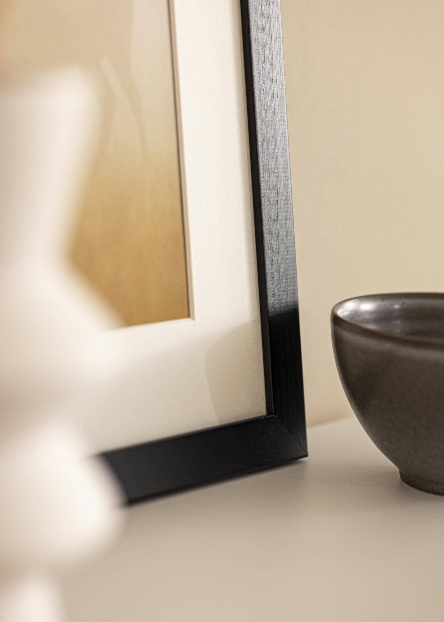 Bist du auf der Suche nach einem schönen schwarzen Bilderrahmen aus Holz in stilvollem, elegantem Design, dann ist ein Bilderrahmen der Serie Trendline eine ausgezeichnete Wahl. Der Bilderrahmen in Schwarz mit mattem Finish ist eine tolle Alternative, die als Einrahmung für jede Art von Bild verwendet werden kann, ob Hochzeitsfoto, außergewöhnliches Poster, eigenes Gemälde oder Zeichnung, Kunstdruck und vieles mehr. Dieser Bilderrahmen hebt sich durch sein breites, ausdrucksstarkes Profil von 25 mm von anderen Bilderrahmen ab. Das ansprechende Design in Kombination mit der dekorativen Leistenbreite verleiht dem Bilderrahmen seinen modernen, stilsicheren Charakter, der zu vielen Wohn- und Einrichtungsstilen, zu vielerlei Interieurs passt.