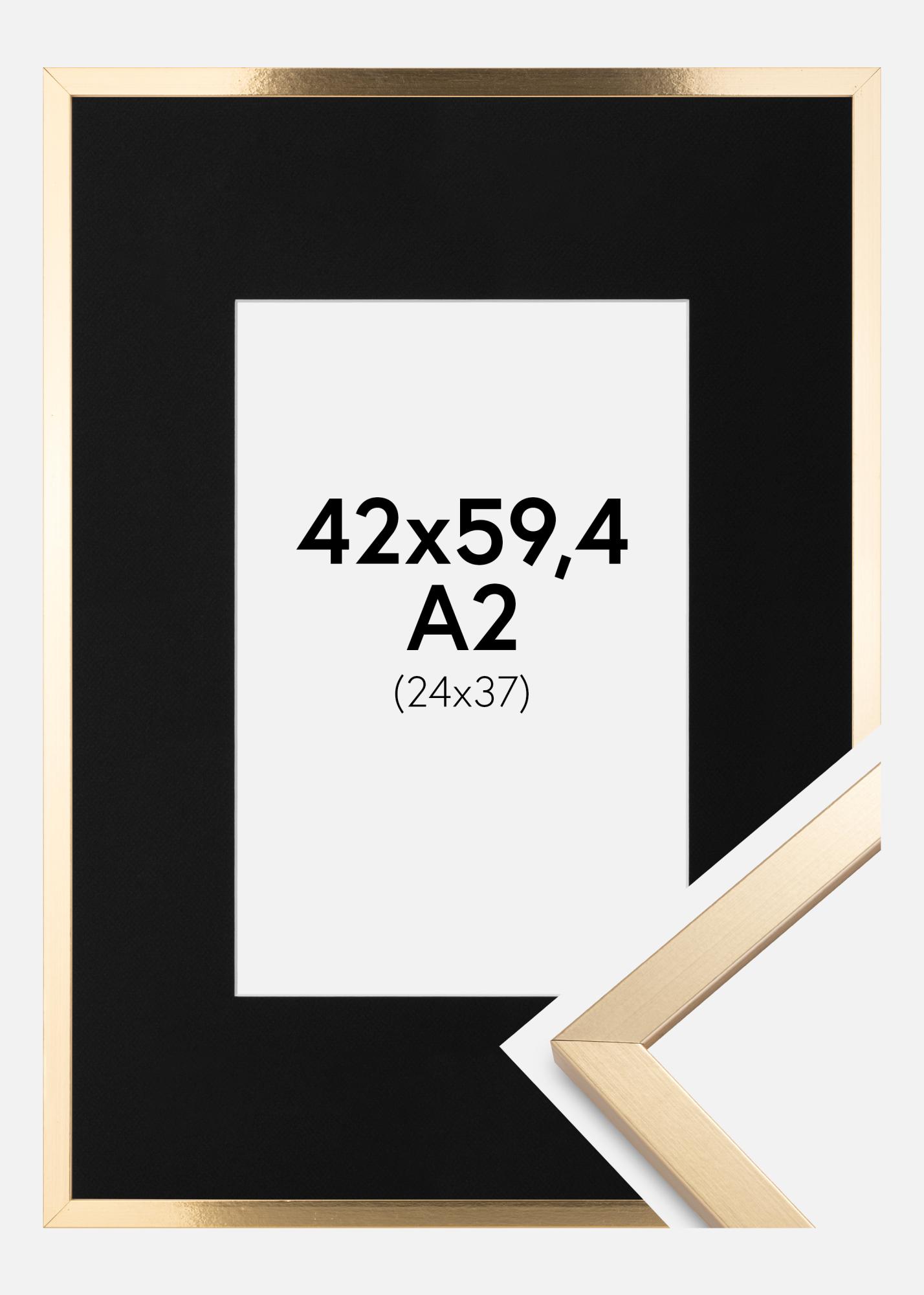 Rahmen Trendy Gold 42x59,4 cm (A2) - Passepartout Schwarz 25x38 cm