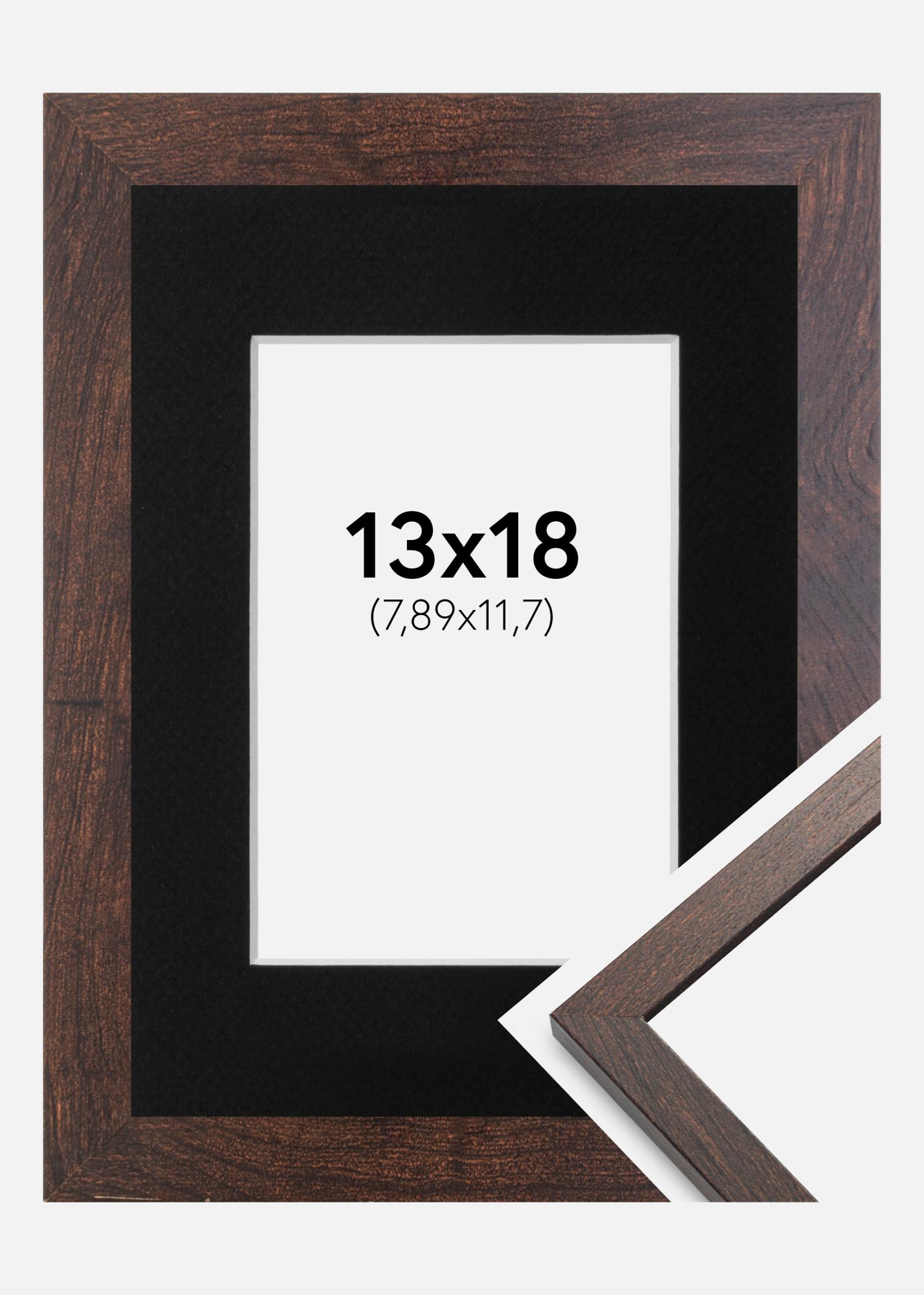 Rahmen Trendy Walnuss 13x18 cm - Passepartout Schwarz 3,5x5 inches