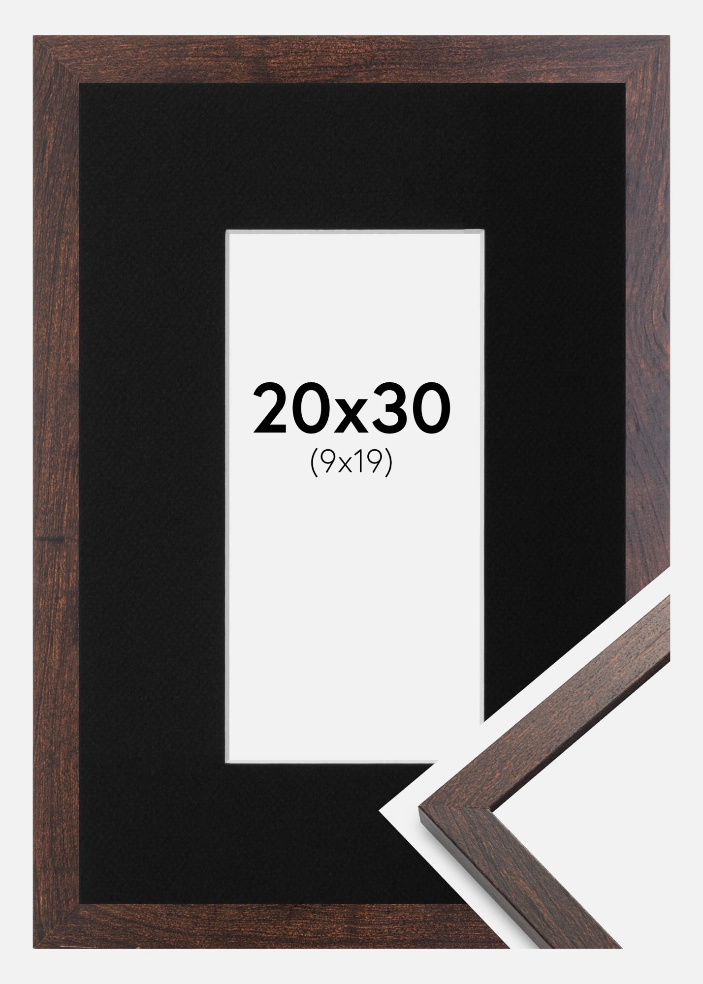 Rahmen Trendy Walnuss 20x30 cm - Passepartout Schwarz 10x20 cm