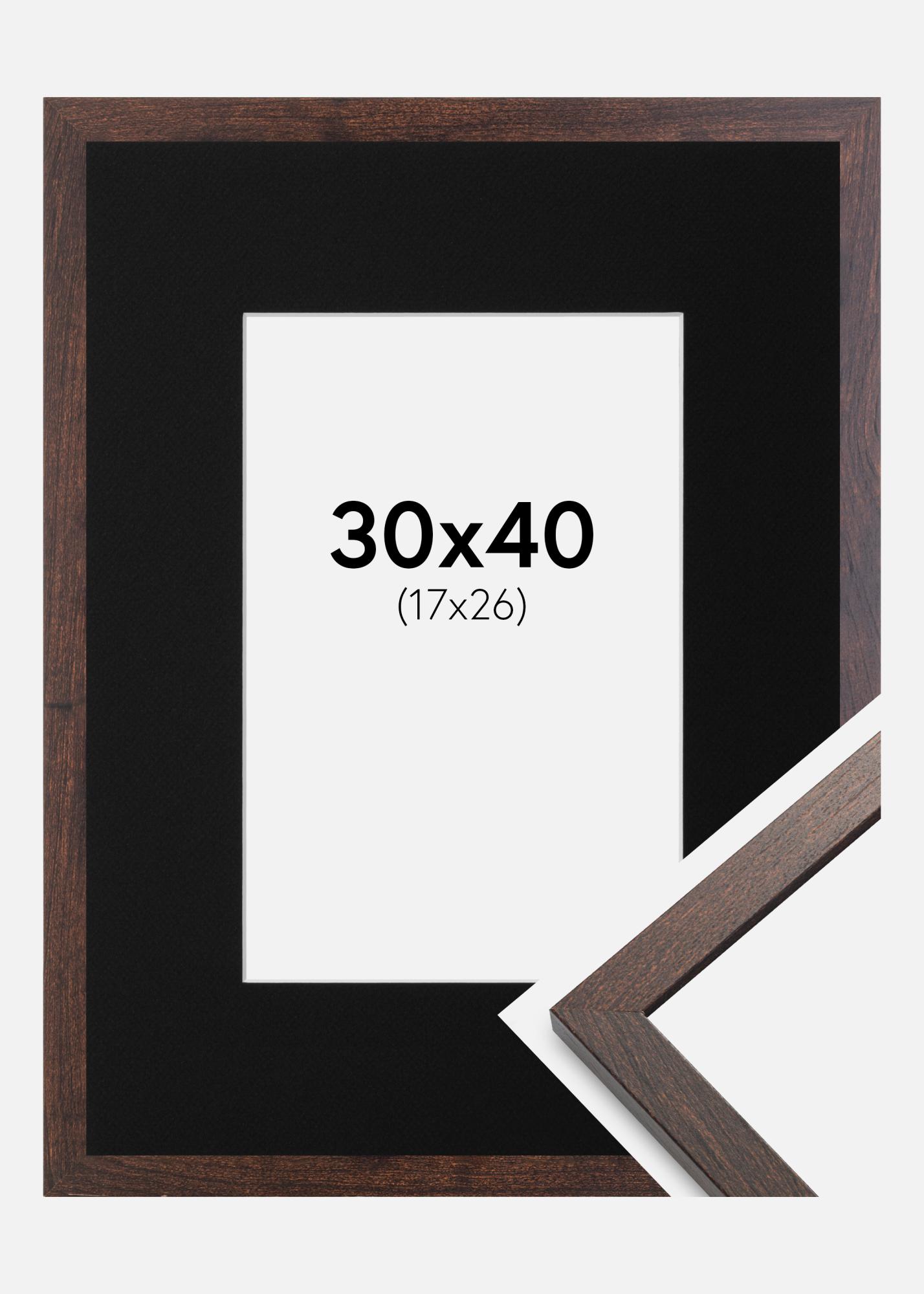 Rahmen Trendy Walnuss 30x40 cm - Passepartout Schwarz 18x27 cm