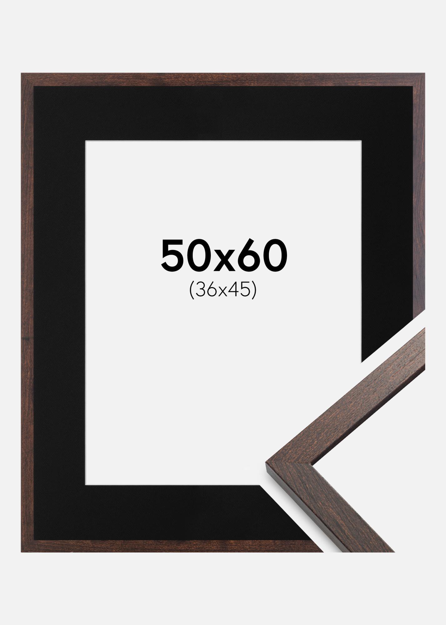 Rahmen Trendy Walnuss 50x60 cm - Passepartout Schwarz 37x46 cm