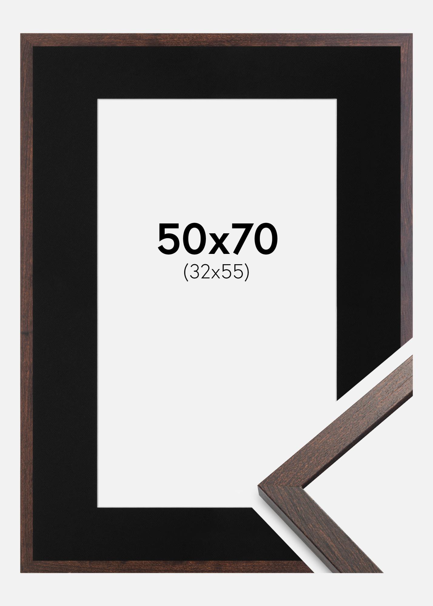 Rahmen Trendy Walnuss 50x70 cm - Passepartout Schwarz 33x56 cm