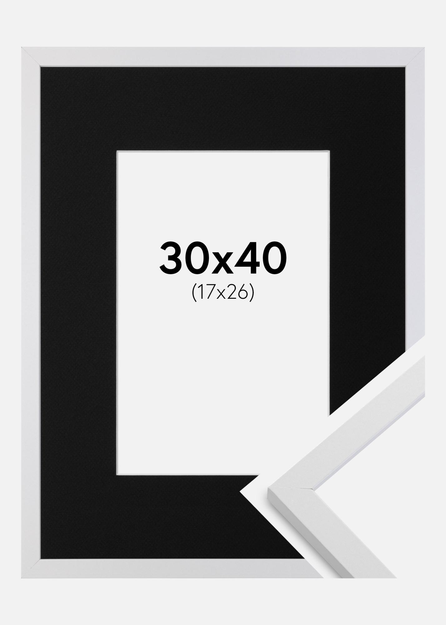 Rahmen Trendy Weiß 30x40 cm - Passepartout Schwarz 18x27 cm