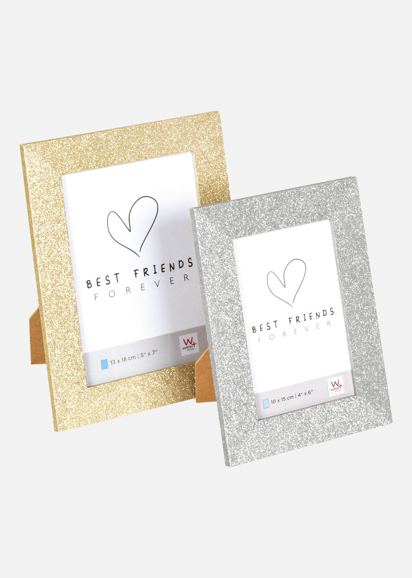 Dies ist eine ausgezeichnete Wahl für diejenigen, die ihren Bildern einen glitzernden und exklusiven Rahmen verleihen möchten. Der Rahmen ist in Silber und misst 13x18 cm, was ihn ideal für kleinere Fotografien oder Kunstwerke macht.