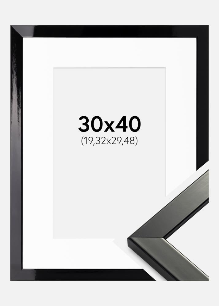 Rahmen Uppsala Schwarz Hochglänzend 30x40 cm - Passepartout Weiß 8x12 inches