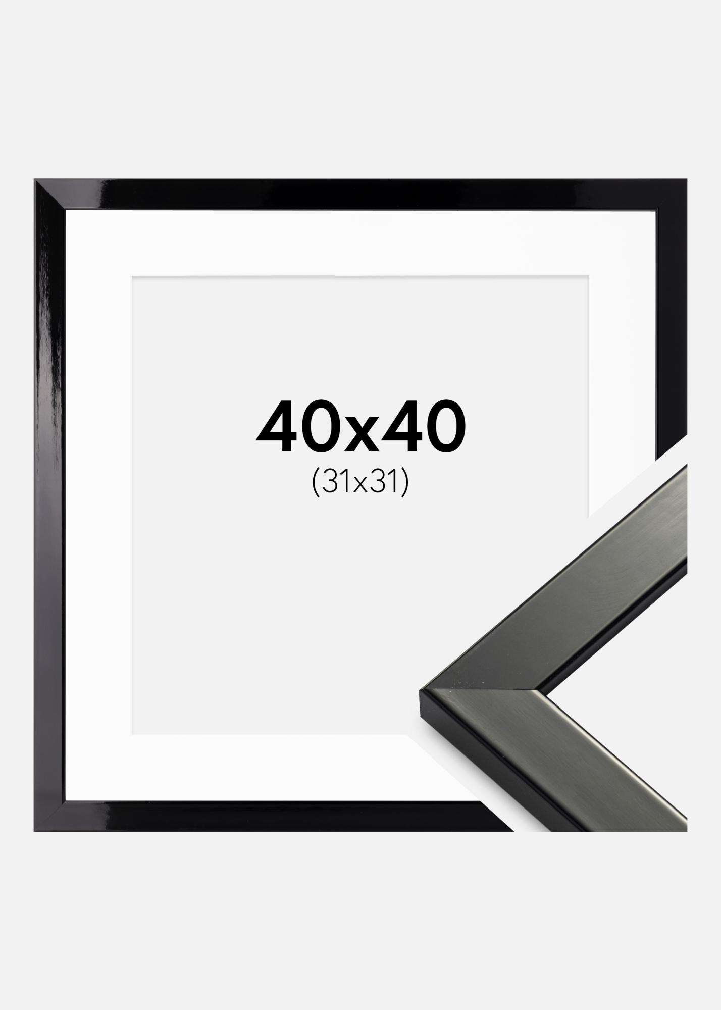 Rahmen Uppsala Schwarz Hochglänzend 40x40 cm - Passepartout Weiß 32x32 cm