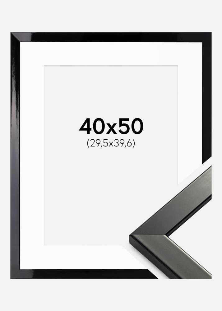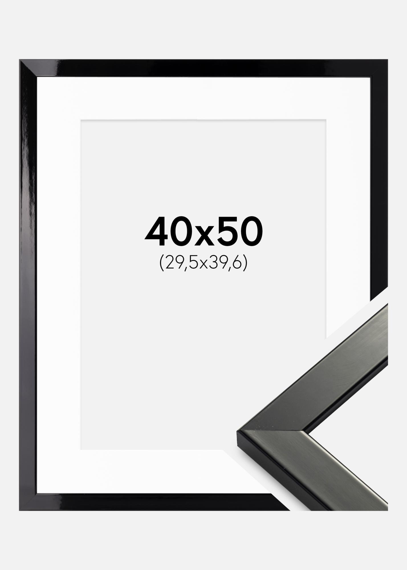 Rahmen Uppsala Schwarz Hochglänzend 40x50 cm - Passepartout Weiß 12x16 inches