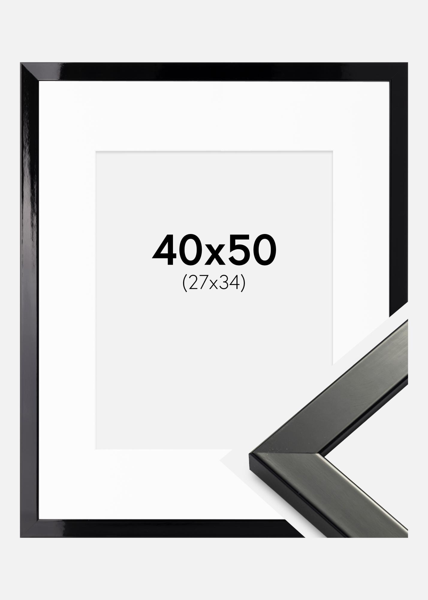 Rahmen Uppsala Schwarz Hochglänzend 40x50 cm - Passepartout Weiß 28x35 cm