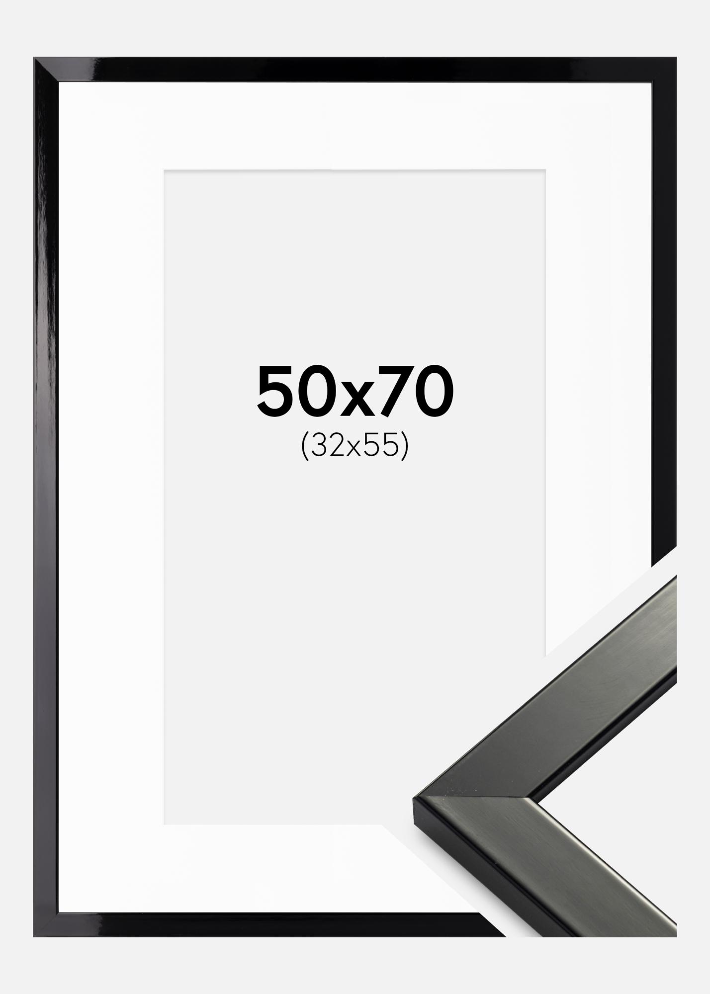 Rahmen Uppsala Schwarz Hochglänzend 50x70 cm - Passepartout Weiß 33x56 cm